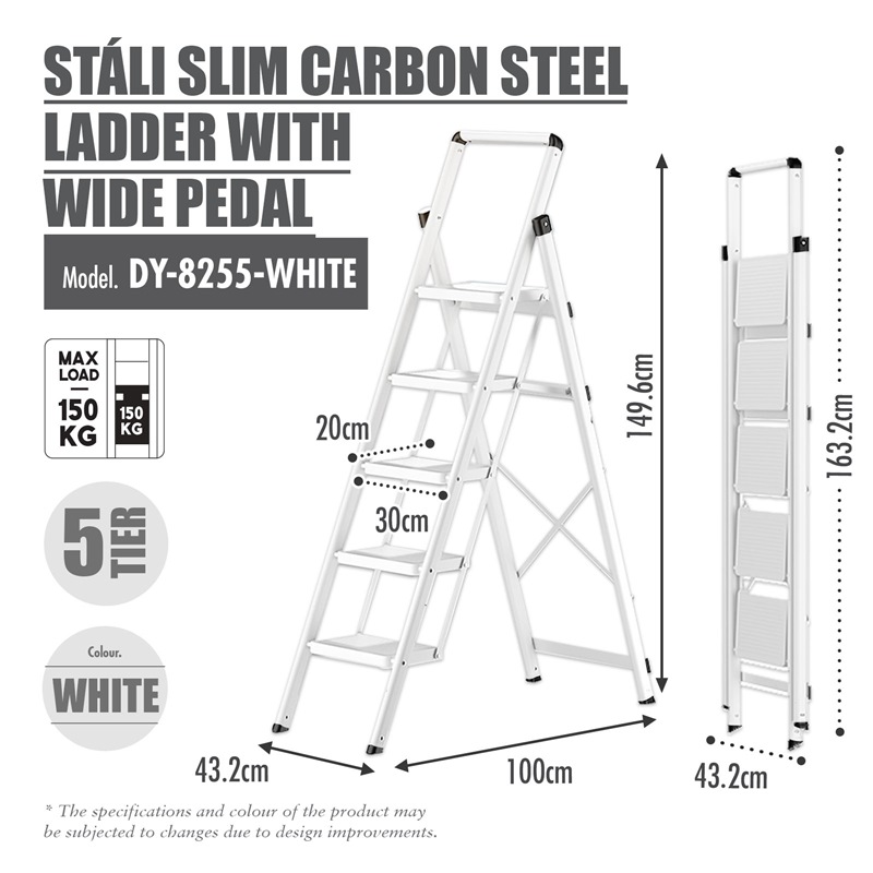 Home » Ladders, Trolleys & Storage » Ladders, Step Stools & Work Platforms » HOUZE STÁLI SLIM CARBON STEEL LADDER WITH WIDE PEDAL