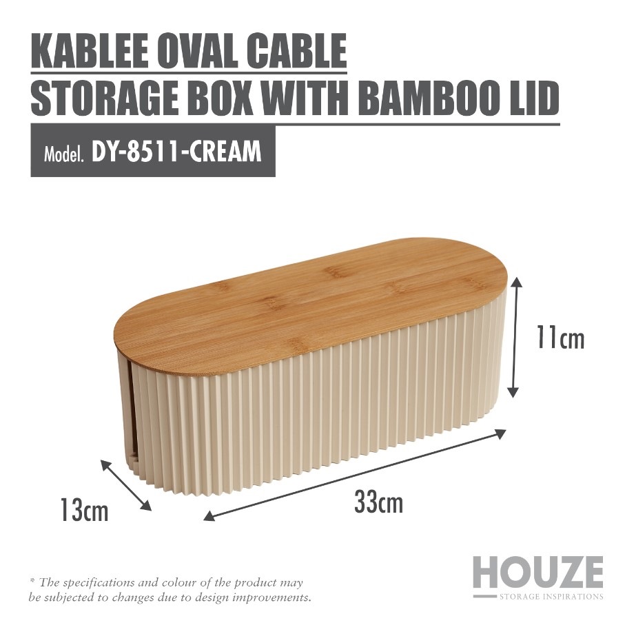 HOUZE KABLEE OVAL CABLE STORAGE BOX WITH BAMBOO LID DY-8511-CREAM