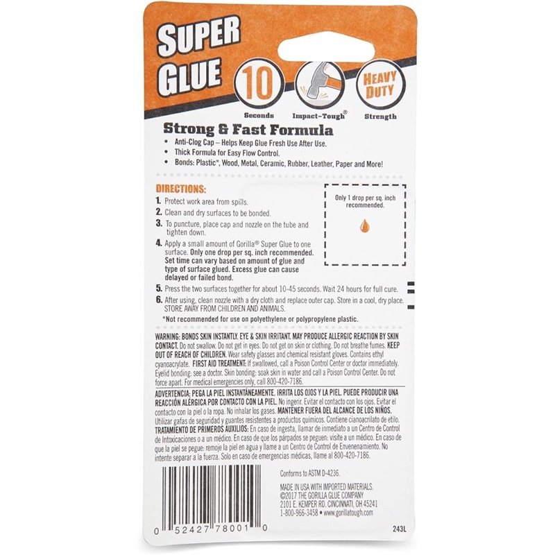 This super glue is work on a variety of materials creating a long-lasting repair in an instant. Reinforced to increase impact resistance and strength.