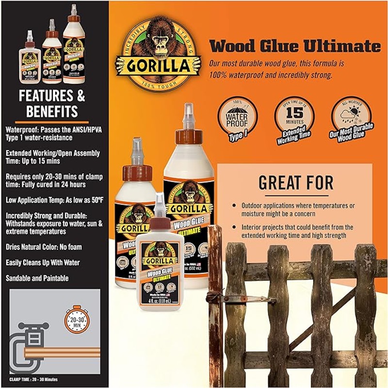 GORILLA WOOD GLUE ULTIMATE WHITE 8OZ [104404]