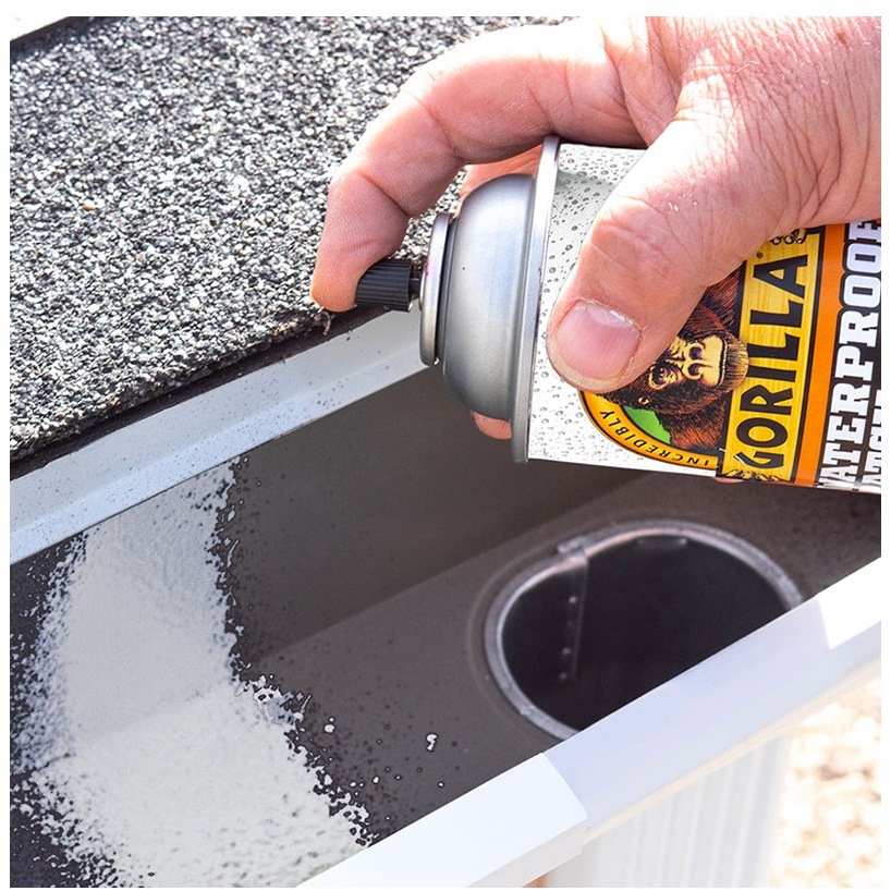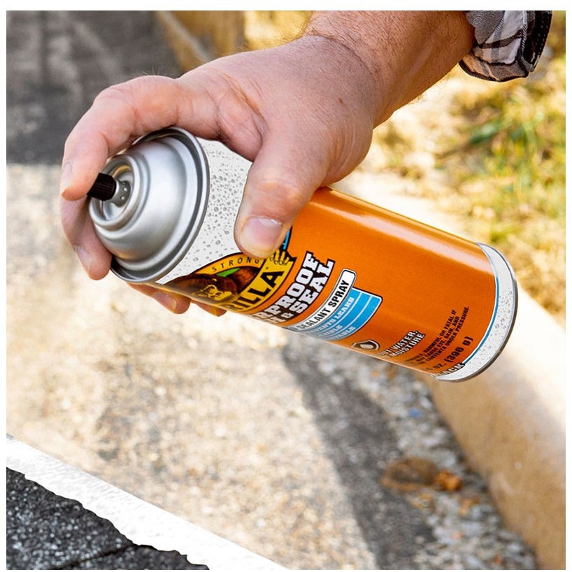 Gorilla Waterproof Patch & Seal Spray is a flexible, rubberized coating that seals out water, air and moisture. The applicator nozzle has a controlled spray pattern providing a clean, even coat. Once applied, the self leveling formula smoothly covers small gaps and cracks ensuring a watertight seal. When dried, Gorilla Waterproof Patch & Seal Spray is paintable and temperature resistant resulting in lasting repairs!