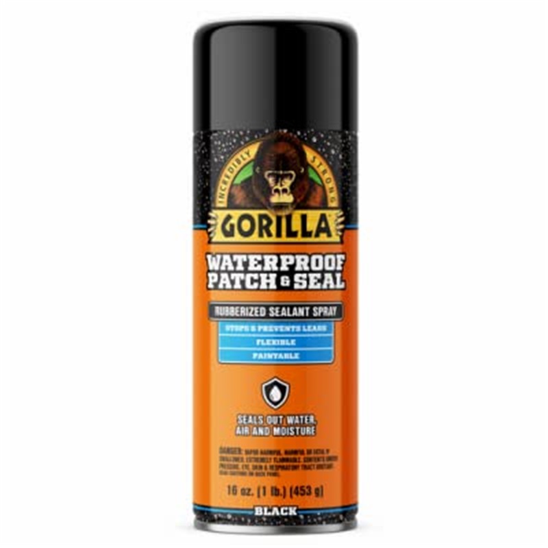 Gorilla Waterproof Patch & Seal Spray is a flexible, rubberized coating that seals out water, air and moisture. The applicator nozzle has a controlled spray pattern providing a clean, even coat. Once applied, the self leveling formula smoothly covers small gaps and cracks ensuring a watertight seal. When dried, Gorilla Waterproof Patch & Seal Spray is paintable and temperature resistant resulting in lasting repairs!