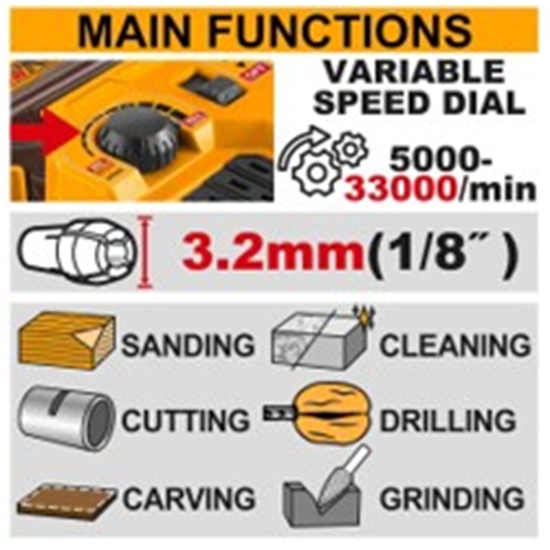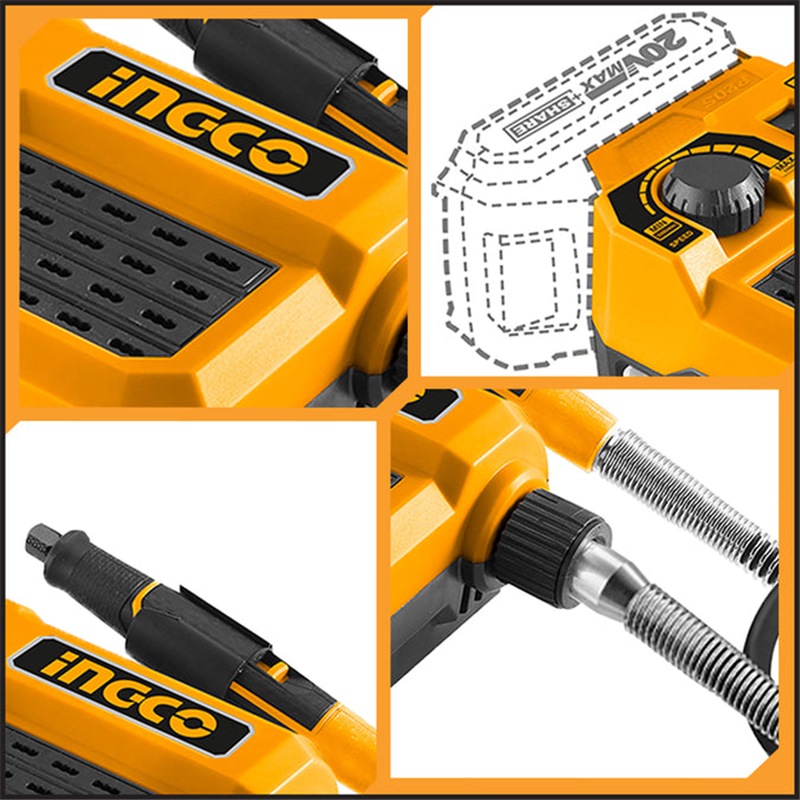 INGCO 20V LI-ION V. SPEED CONTROL GRINDER 1X2.0AH & 40 PC ACCES CMGLI20011