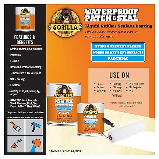 Home » Chemical Supplies » Adhesives & Glues » GORILLA WATERPROOF RUBBERIZED COATING LIQUID 16OZ (WHITE) [105343]