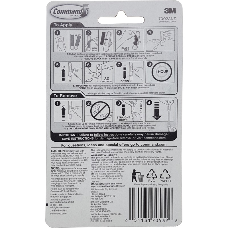 Home » Household Products » Home & Office Supplies » 3M COMMAND SMALL HOOKS - 17002ANZ