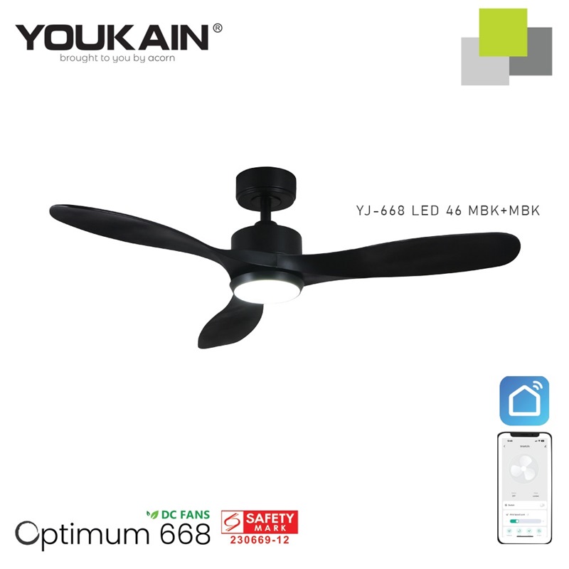 YOUKAIN 46" SMART CEILING FAN (WITH LIGHT) YJ-668 (MATT-BLACK BODY)