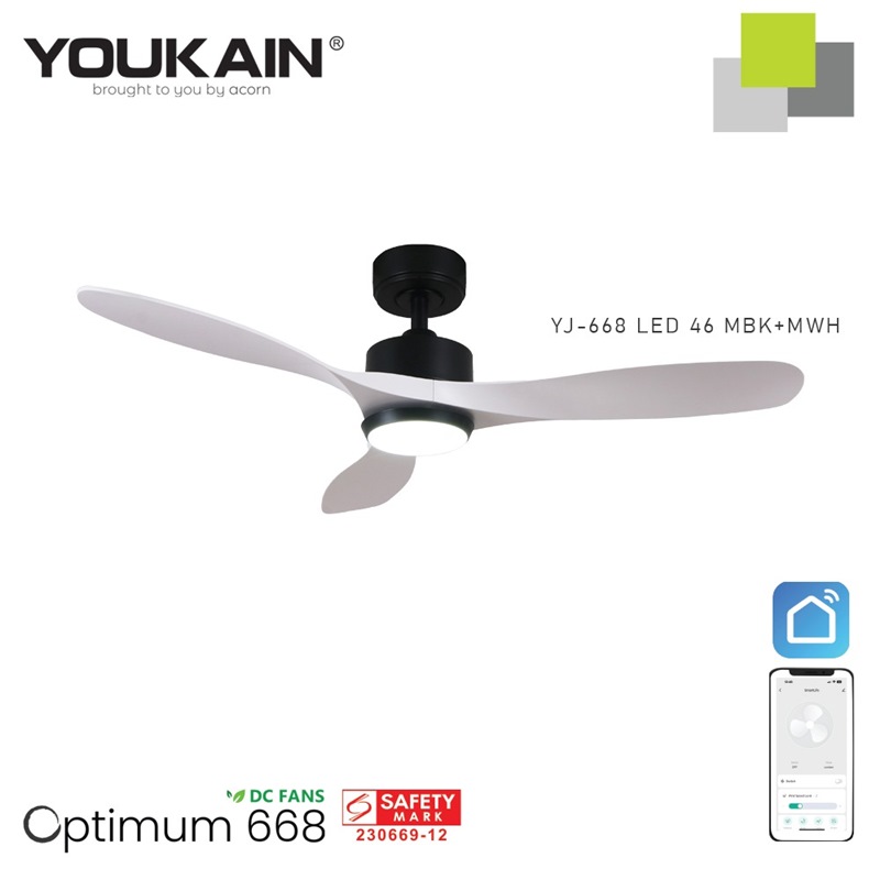 Introducing YOUKAIN – Optimum YJ-668 New DC Ceiling Fan, brought to you by ACORN. This Smart Ceiling Fan is designed with both style and functionality in mind, equipped with state-of-the-art features to enhance your overall comfort and convenience. The downrod system enables an extension to accommodate the height of your space to enjoy maximum performance.