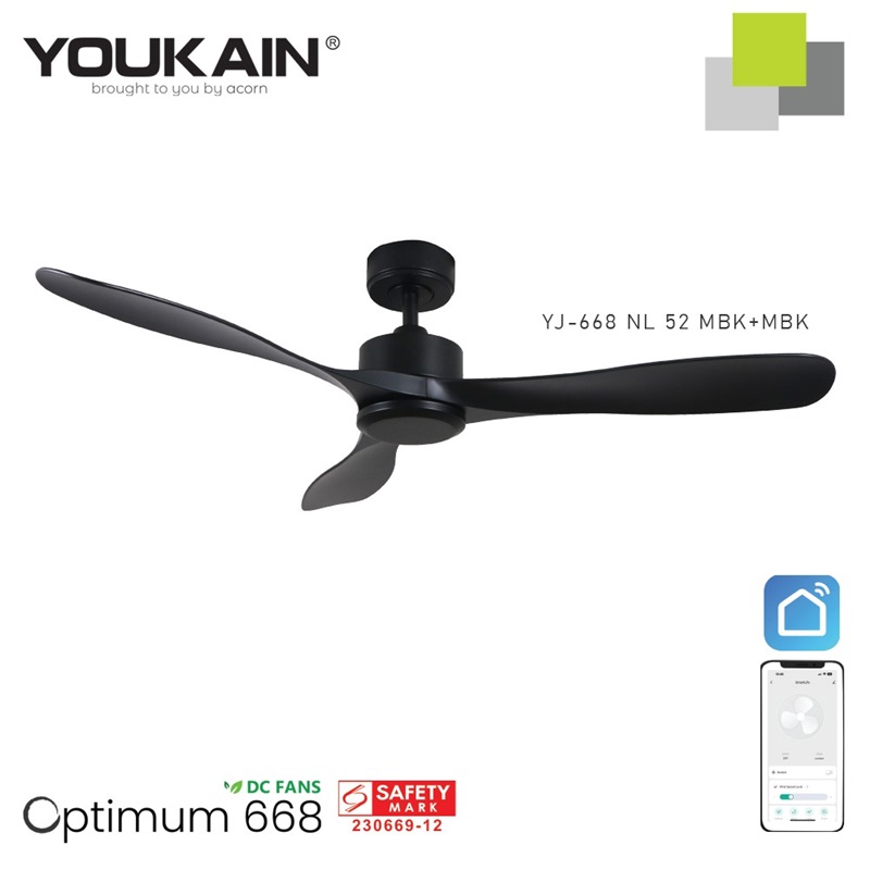 YOUKAIN 52" SMART CEILING FAN (NO LIGHT) YJ-668 (MATT-BLACK BODY)