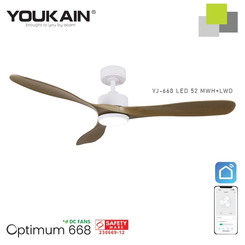 Introducing YOUKAIN – Optimum YJ-668 New DC Ceiling Fan, brought to you by ACORN. This Smart Ceiling Fan is designed with both style and functionality in mind, equipped with state-of-the-art features to enhance your overall comfort and convenience. The downrod system enables an extension to accommodate the height of your space to enjoy maximum performance.