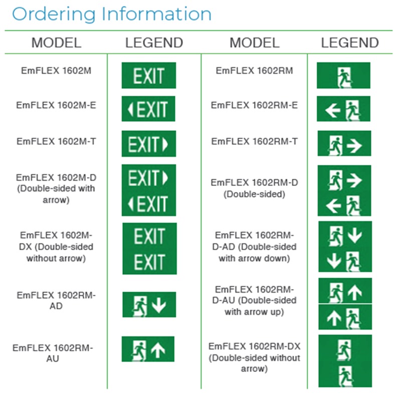 All new slim and lightweight LED emergency exit signs with option for Exit or Running Man signage.