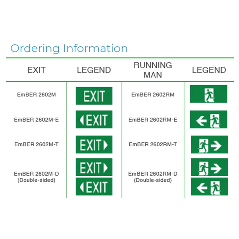 The EmBER 2602M/RM LED Slim Box Emergency Exit Sign series is a self contained emergency exit sign encased in a slim box made of fire retardant polycarbonate.