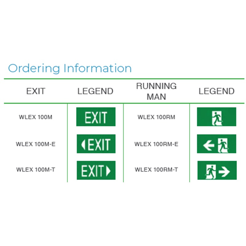 The WLEX 100M series is a corrosion resistant, weatherproof self-contained exit light made of polycarbonate material.