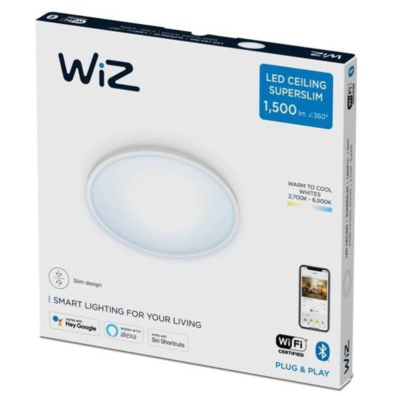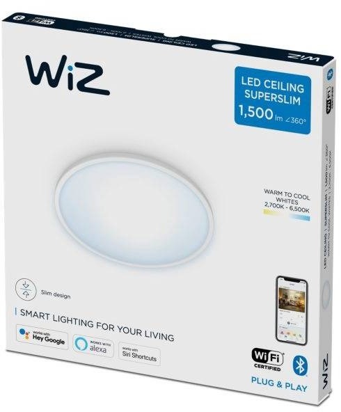 Add tunable warm or cool white light to your living spaces with the WiZ Super Slim smart ceiling light. Use with the WiZ app or your voice to dim and brighten or use preset light modes on Wi-Fi setups.
