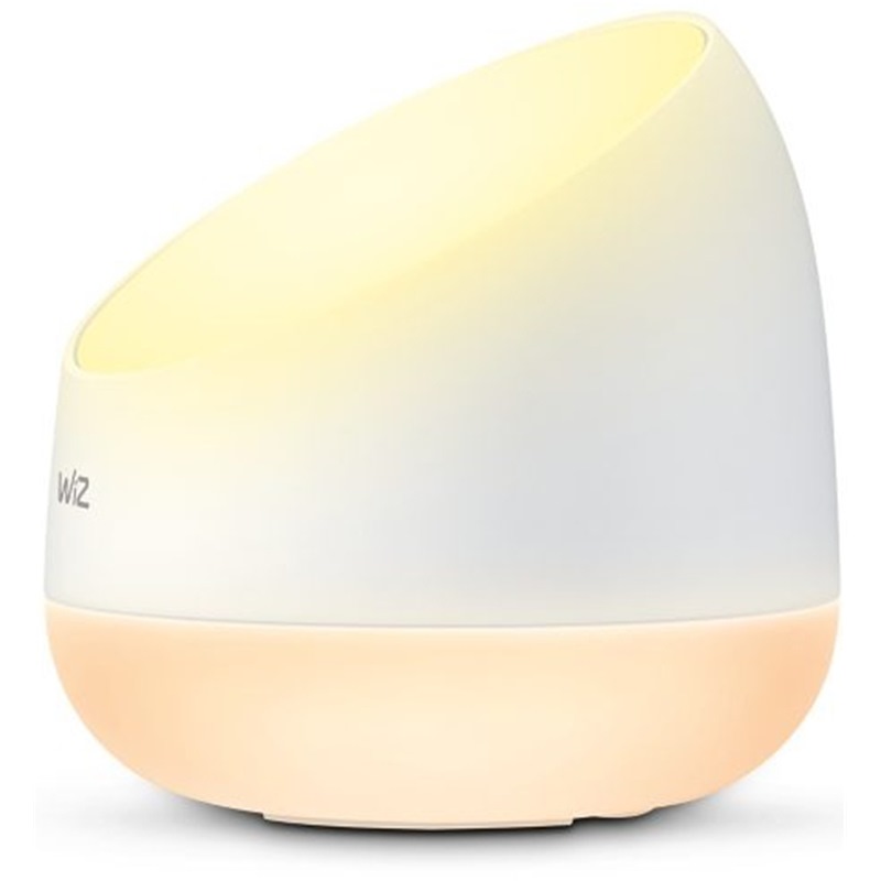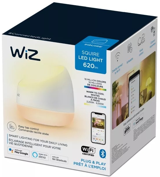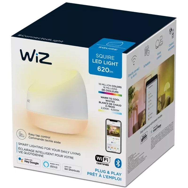 Bring smart light to any corner of your space with the WiZ Squire dual zone table lamp, which casts colorful light onto the wall. Use with the WiZ app or your voice to dim and brighten or use preset light modes on Wi-Fi setups.