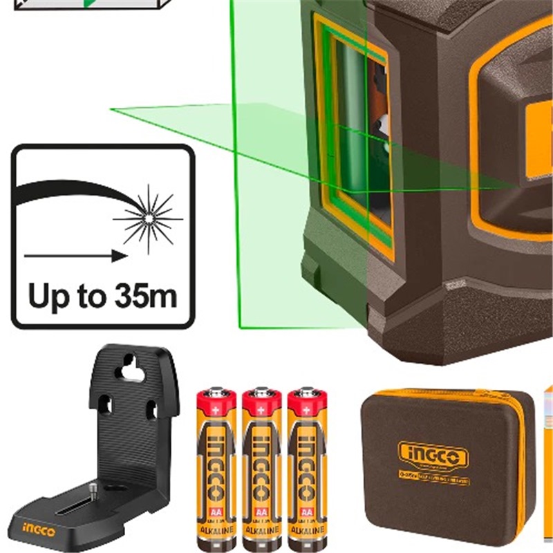 Home » Hand Tools » Laser Measure & Line Laser » INGCO SELF LEVELLING GREEN BEAM LEVELLER 1V1H 35M RANGE HLL156601