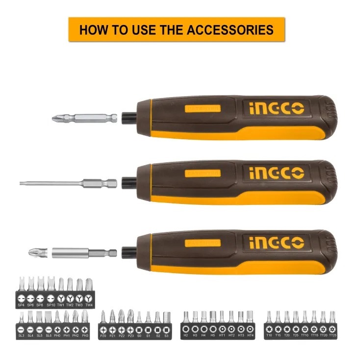 INGCO 4V LI-ION CORDLESS SCREWDRIVER W/43PCS BIT SET CSDLI04062