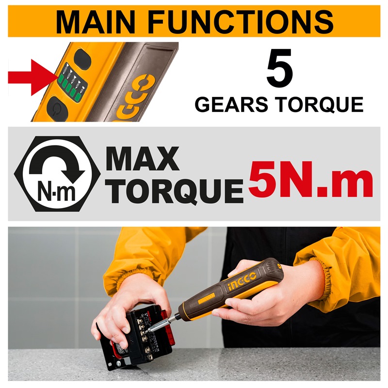 Home » Power Tools - Cordless » Cordless Drills, Impact Drivers & Wrenches » INGCO 4V LI-ION CORDLESS SCREWDRIVER W/43PCS BIT SET CSDLI04062
