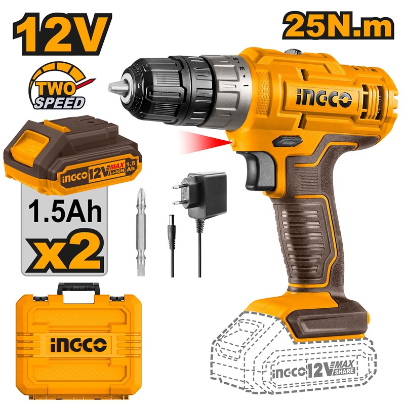 INGCO 12V 2X1.5AH LI-ION DRILL, CDLI1228