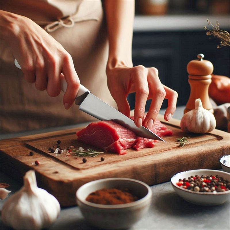 Crafted with precision from chromium steel, our chef knife is a staple for every kitchen. Its ergonomic handle ensures a comfortable grip, while its razor-like sharpness promises effortless cutting every time!