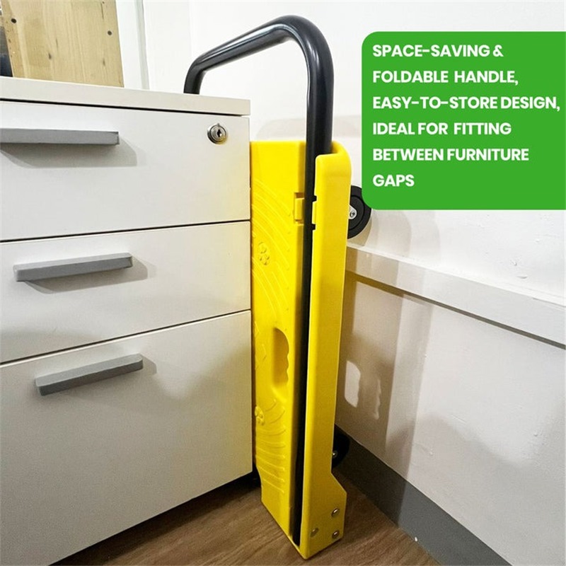 Introducing the Steve & Leif Yellow PP Push Trolley, a versatile solution for effortless transportation in any environment. This trolley features sturdy 3'' TPR wheels that ensure smooth, 360° rotation for easy maneuverability. Its space-saving design includes foldable handles, making it perfect for navigating tight spaces and fitting between furniture gaps with ease.