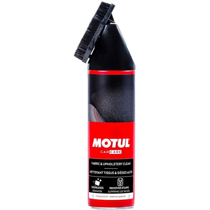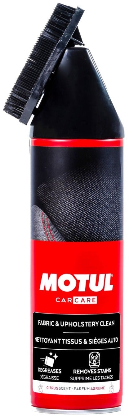 MOTUL® Fabric & Upholstery Clean cleans and removes stains from upholstery. Specially designed to protect textiles, carpets, fabrics, and floor coverings. Cleans, nourishes, and restores the color of all types of textiles, carpets, fabrics, and floor coverings found in car interiors. It penetrates the fabric structure and removes dirt and stains. The exclusive formula provides protection for fabrics, upholstery, and carpets in cars. It protects against external effects (such as friction and discoloration) and leaves a pleasant fragrance. Extends the lifespan of textiles, upholstery, fabric, and carpets, keeping them in optimal condition.