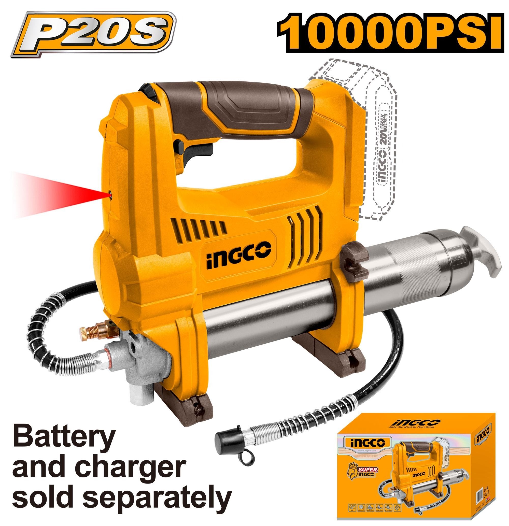 INGCO 20V LI-ION CORDLESS GREASE GUN 10,000 PSI, GGLI2010 (BARE UNIT)