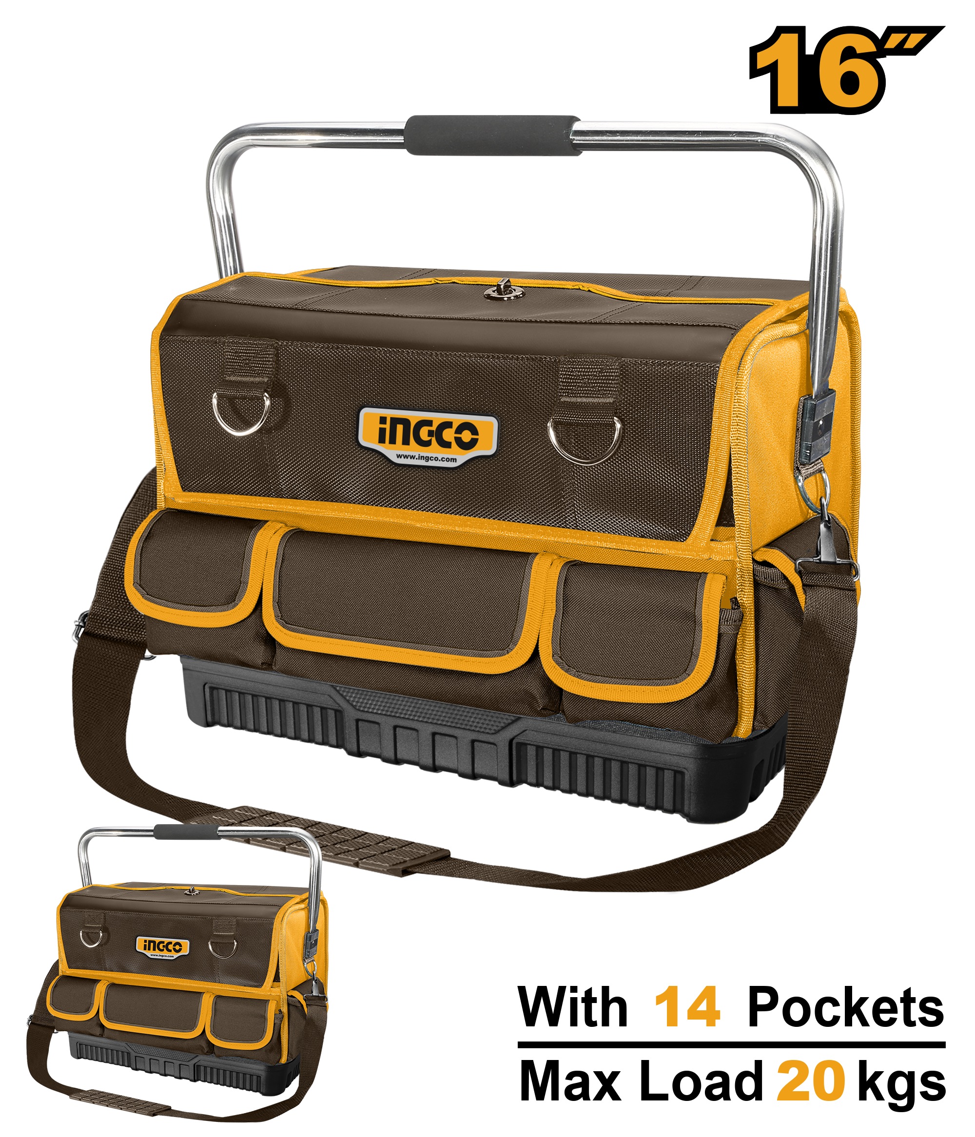 INGCO 16 INCH INDUSTRIAL GRADE 14 POCKETS TOOL BAG 420X240X330MM HTBGL05
