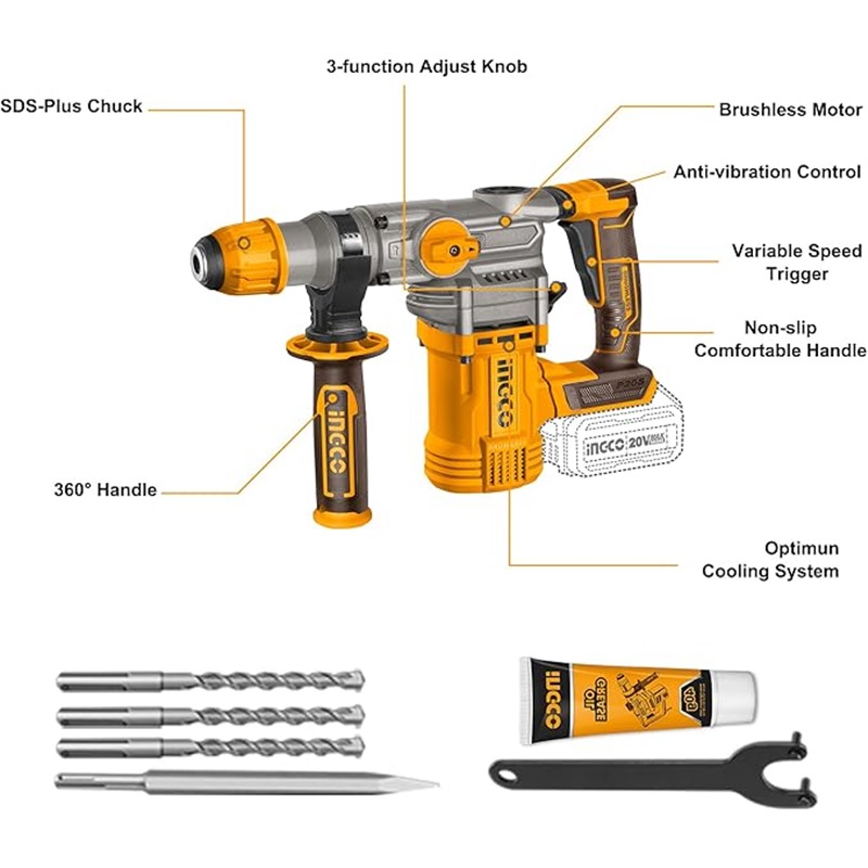 Home » Power Tools - Cordless » Bare Units » INGCO 20V LI-ION BL ROTARY HAMMER 28MMØ CRHLI20288 (BARE UNIT)