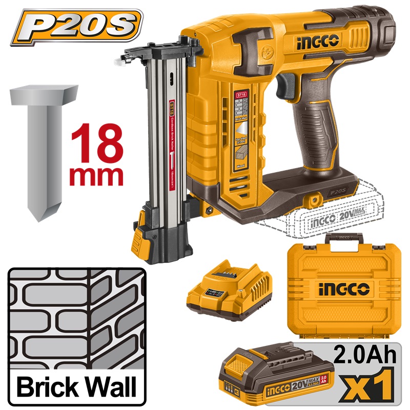INGCO 20V 1X2.0AH CONCRETE BRICK NAILER ST18MM NAIL CSTLI3808