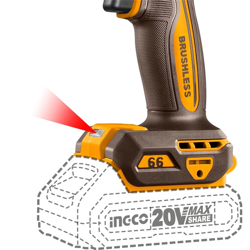 INGCO 20V LI-ION BL IMPACT DRILL 66NM CIDLI206681 (BARE UNIT)