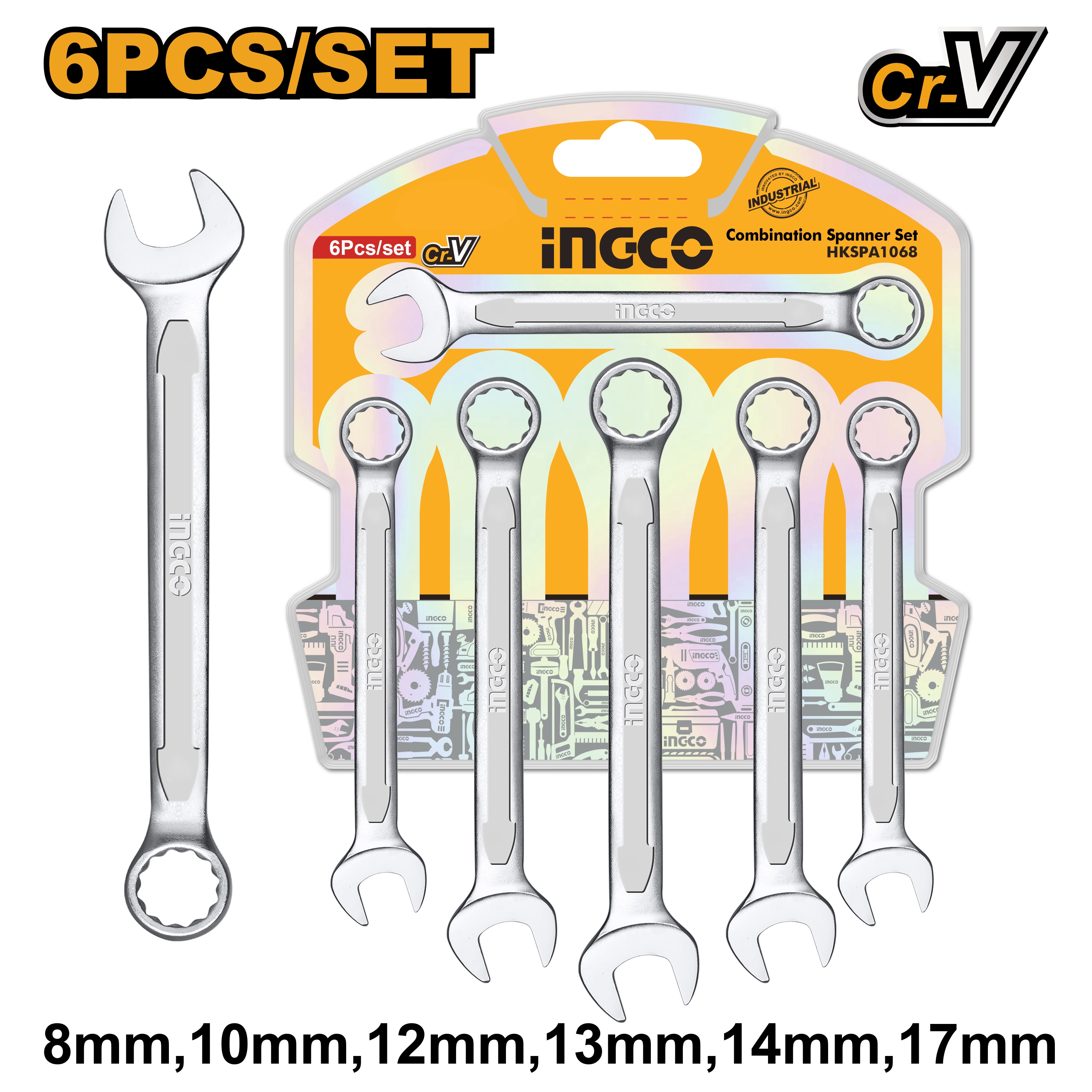 INGCO 6PCS COMBINATION SPANNER SET 8,10,12,13,14,17MM HKSPA1068