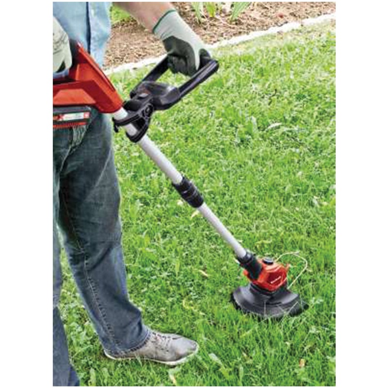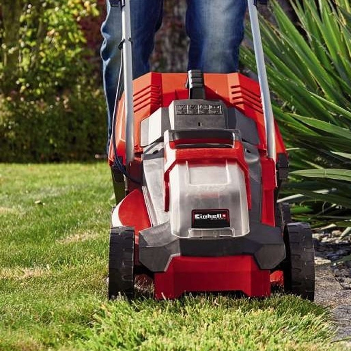 The Einhell GE-CM 18/30 Li - Solo cordless lawn mower helps get the garden into shape quickly – powerful, independent, cordless and eco-friendly. The cordless lawn mower is recommended for lawns of up to 150 m² in size with a cutting width of 30 cm. The lawn mower has an Einhell brushless motor and a high-quality impact-resistant plastic housing. The brushless motor on the cordless lawn mower delivers more power and runs longer than a conventional carbon brush motor. For practical mowing there is a 3-level axial cutting height adjustment facility. A folding long handle enables storage in minimum space. For easy transportation there is an integrated carry handle. The grass catch basket has a capacity of 25 litres. The large wheels put less stress on the lawn while mowing. The same rechargeable battery and charger can be used for all members of the Power X-Change family. Battery & charger are not included and are sold separately.