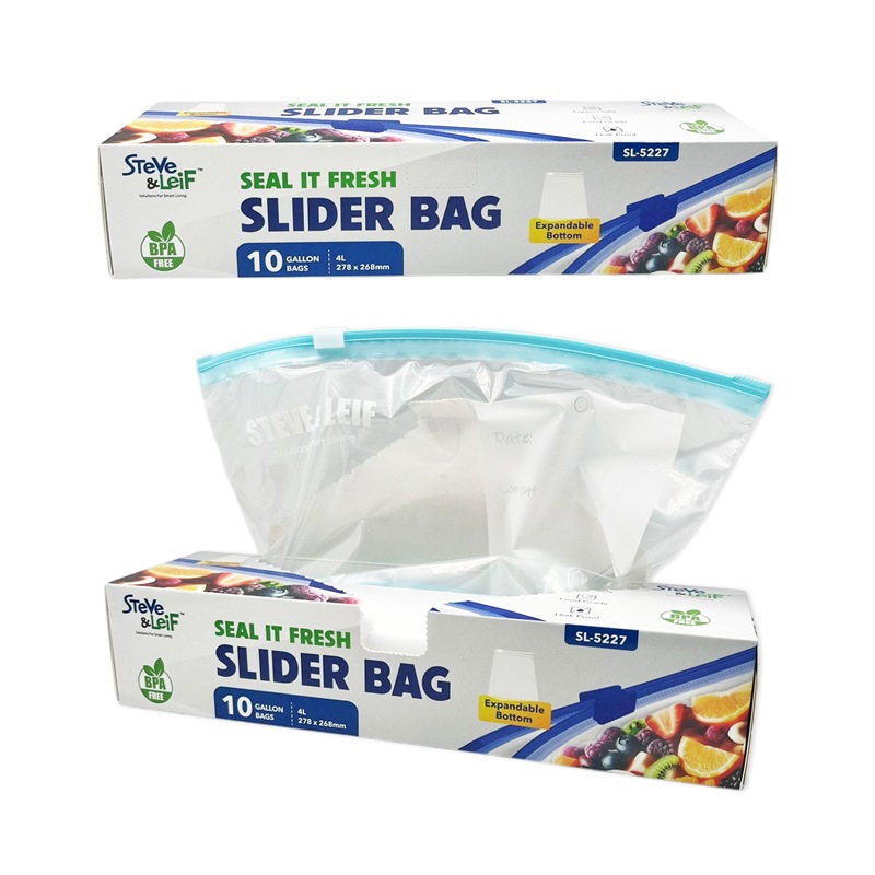 Steve&Leif Resealable Slider Bags are designed to keep your food fresh for longer, with an easy-to-use slider closure that ensures an airtight seal every time. Perfect for storing everything from fruits and vegetables to meats, snacks, and even frozen goods, these bags are built for both convenience and durability. Perfect for busy families, meal prep, and those looking to reduce food waste!