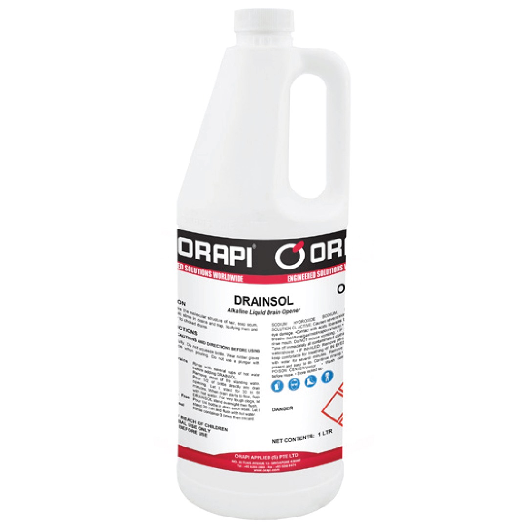 ORAPI DRAINSOL FAST-ACTING, NON-CORROSIVE ALKALINE LIQUID DRAIN OPENER 1L O-9039-I2