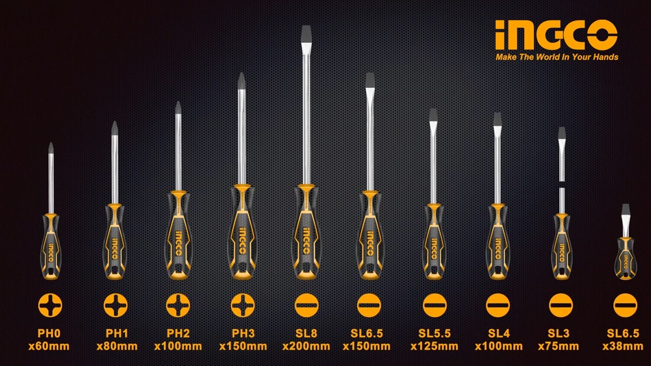 INGCO 10PCS SCREWDRIVER SET 6PCS (-) & 4PCS (+) HKSD1028