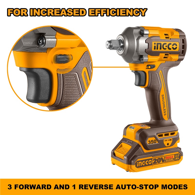 INGCO 20V BL 1/2" IMPACT WRENCH 350NM,2X 2.0AH,+CHARGER &CASE CIWLI2035