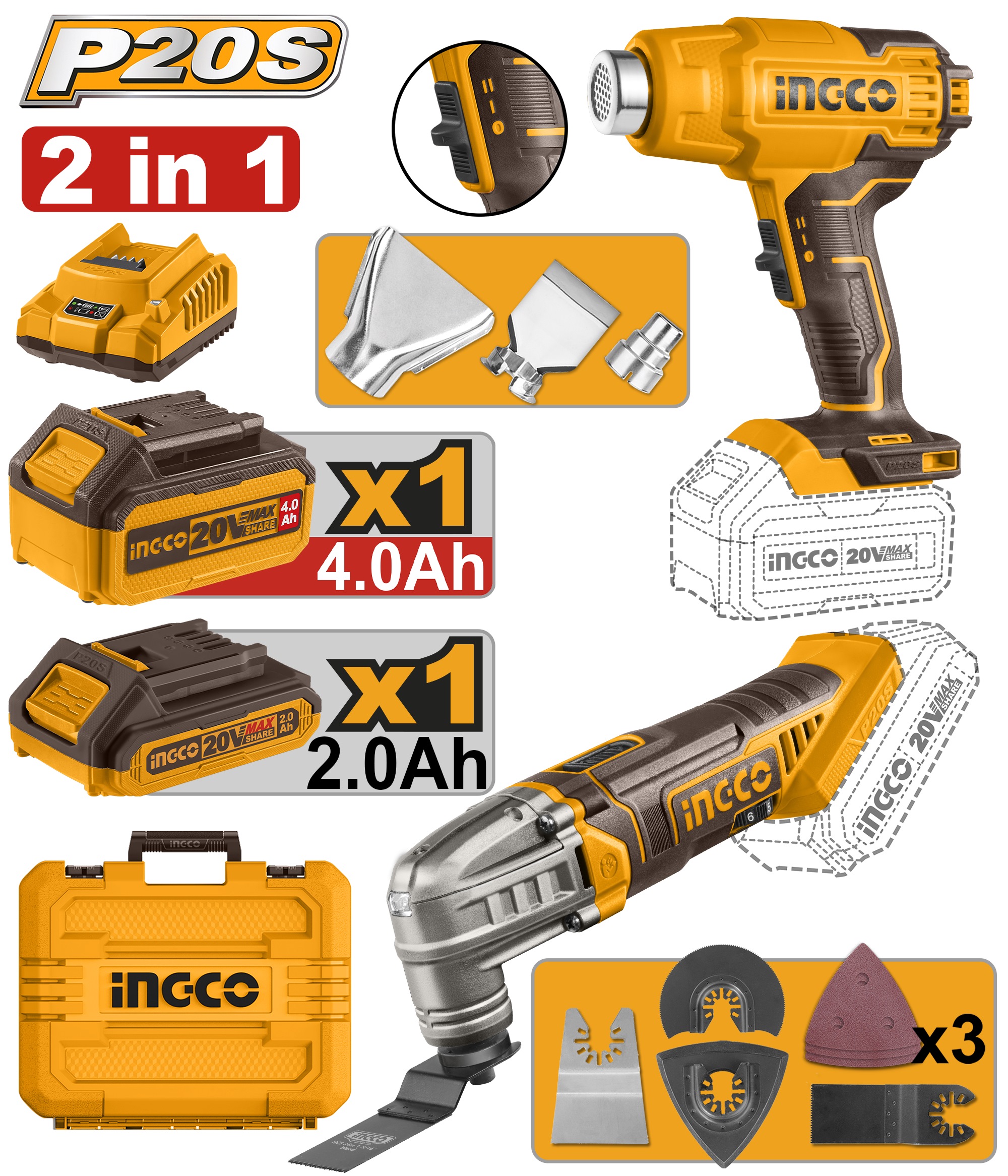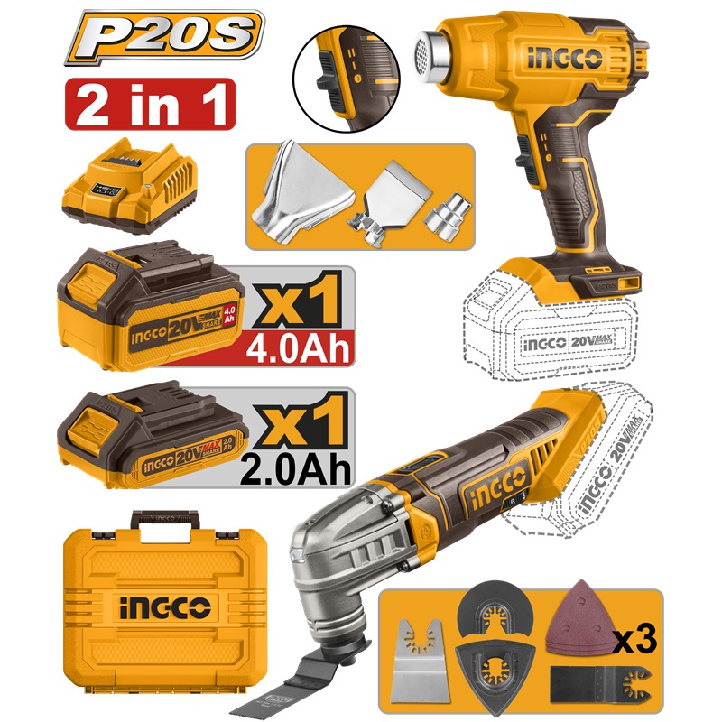 INGCO 20V MULTI TOOL+HOT AIR GUN COMBO 1X4.0 CHRG+CASE COSLI230703