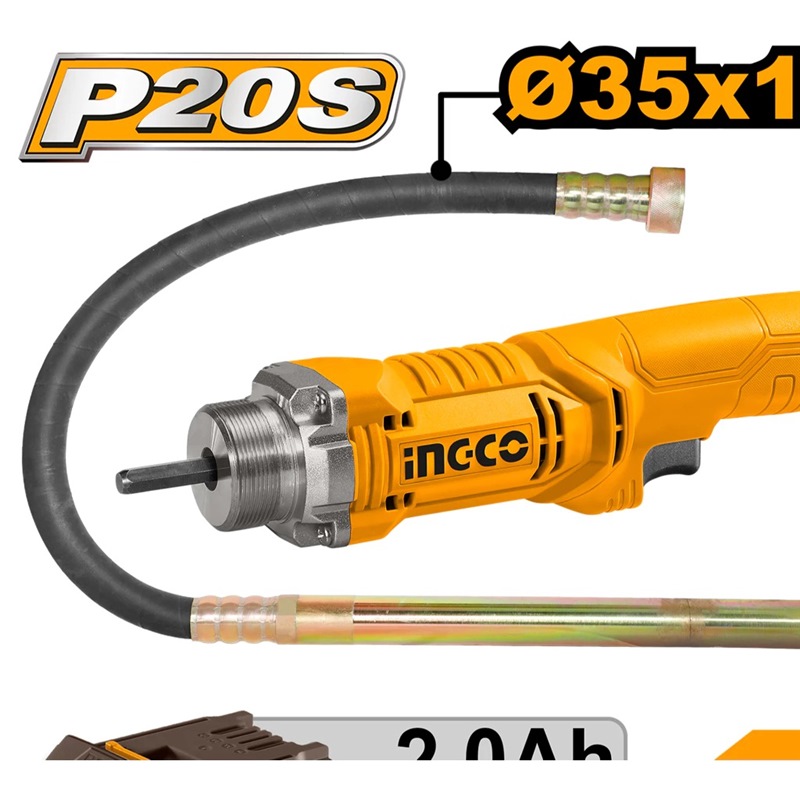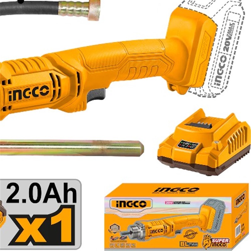 INGCO 20V CORDLESS CONCRETE VIBRATOR 35MMØX1.2M 1X2.0+CHARGER CCVLI2023011