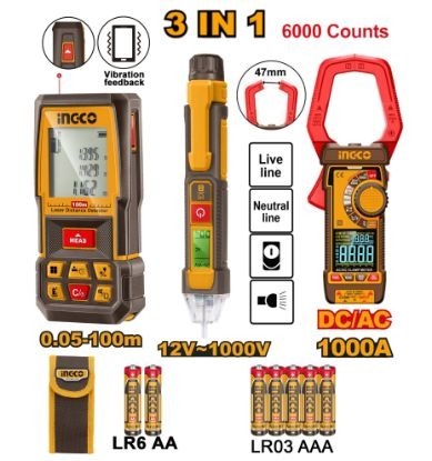 INGCO LASER DISTANCER 100M+DC/AC CLAMP METER+VOLTAGE DETECTOR HLDD241202