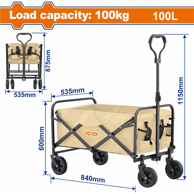 Home » Ladders, Trolleys & Storage » Trolley & Carts » WADFOW CAMPING CART 100KG LOAD 840X535X600MM WWBH1012