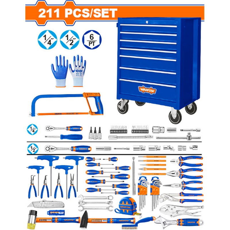 WADFOW 7 DRAWERS ROLLING CABINET W/211PCS TOOLS SET WHS3211