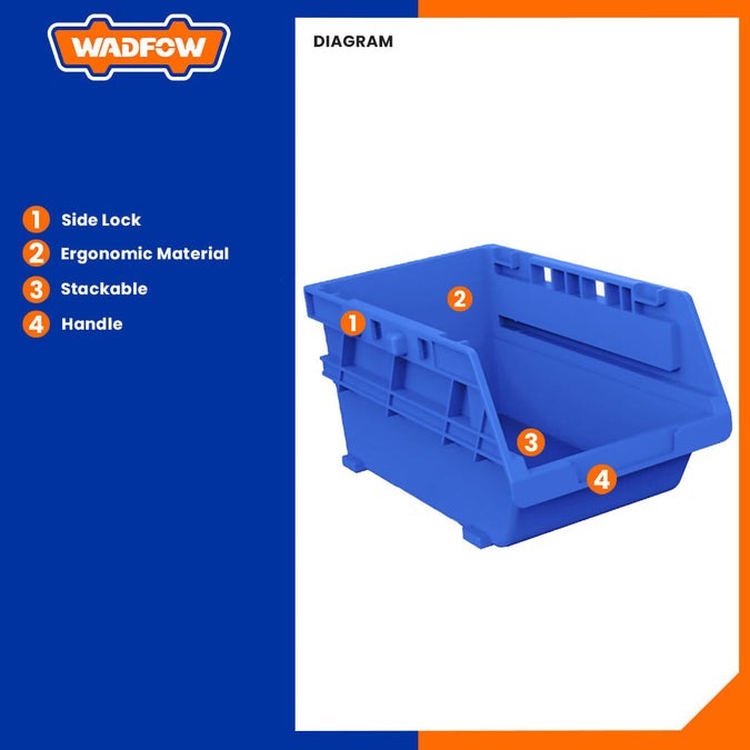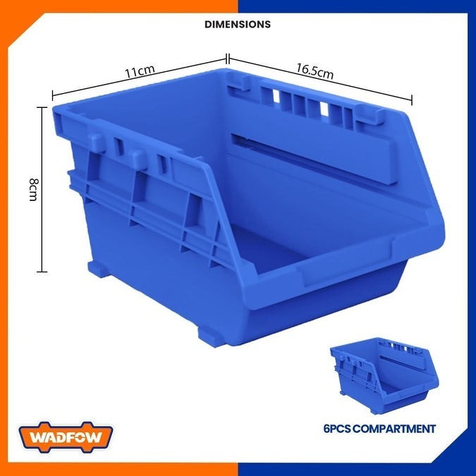 Home » Ladders, Trolleys & Storage » Toolboxes, Tool Bags & Work Benches » WADFOW BLUE STACKABLE STORAGE BIN 115X110X80MM (6PCS SET) WTB8336