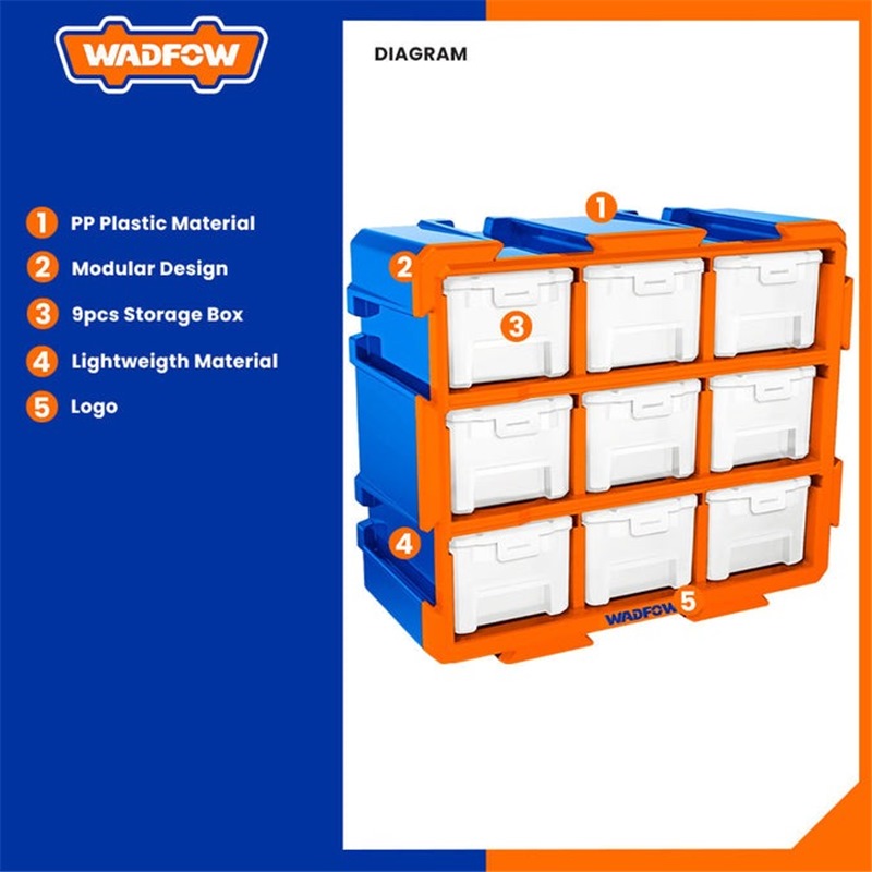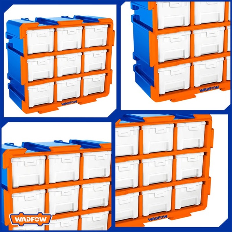 Home » Ladders, Trolleys & Storage » Toolboxes, Tool Bags & Work Benches » WADFOW MODULAR STORAGE TOWER W/9 CLEAR BINS 380X155X320MM WTB8331