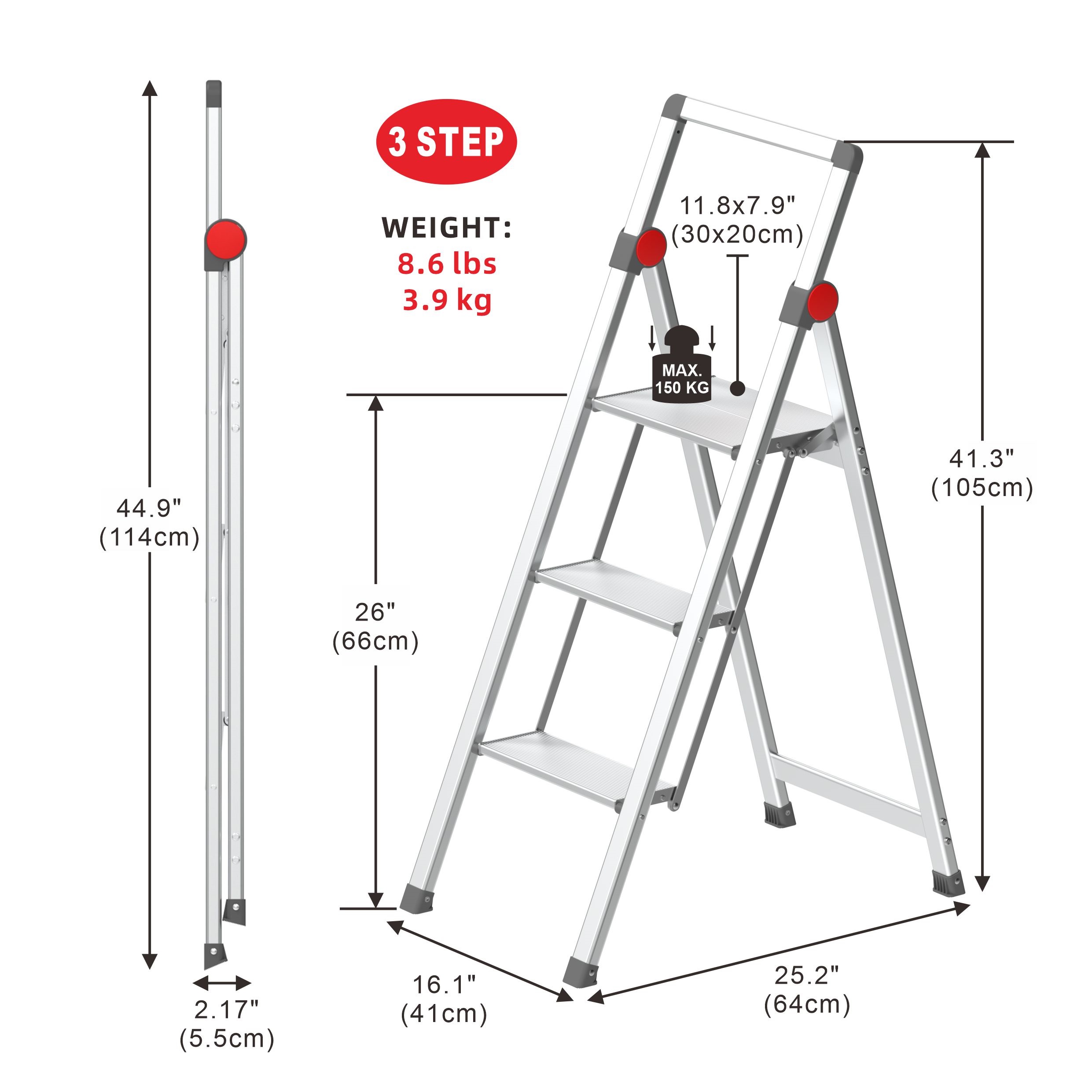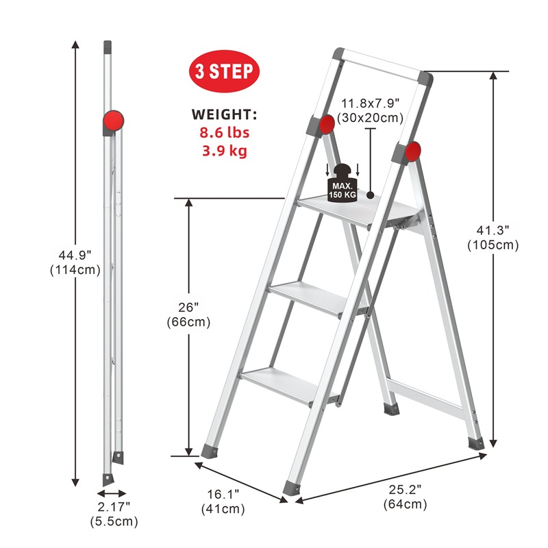 Home » Ladders, Trolleys & Storage » Ladders, Step Stools & Work Platforms » LOUISON® ZC SERIES MINI SLIM LADDER W/HANDRAIL 150KG EN14183