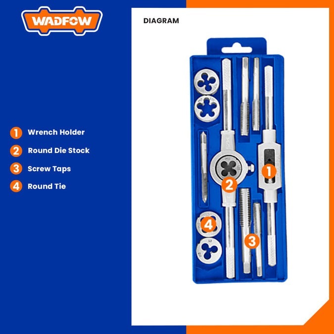 Home » Hand Tools » Taps & Dies » WADFOW 12 PCS METRIC TAP & DIE SET M5-M12 WAJ1L01