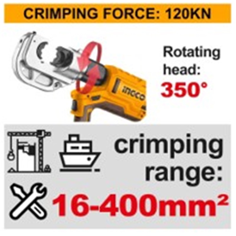 INGCO 20V HYDRAULIC CRIMPING TOOL16-400MM2, 2X20V 5.0AH & CHARGER CTLI2005