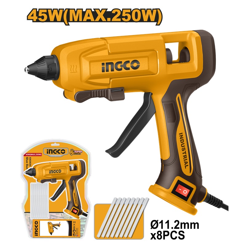 INGCO ELECTRIC GLUE GUN 45W-MAX250W WITH 8PCS150MM GLUE STICK GG408