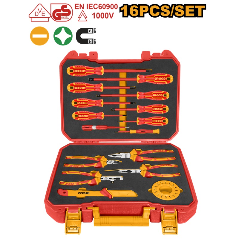 Home » Hand Tools » Hand Tool Sets & Accessory Kits » INGCO VDE 16PCS INSULATED HAND TOOL SET HKITH1601