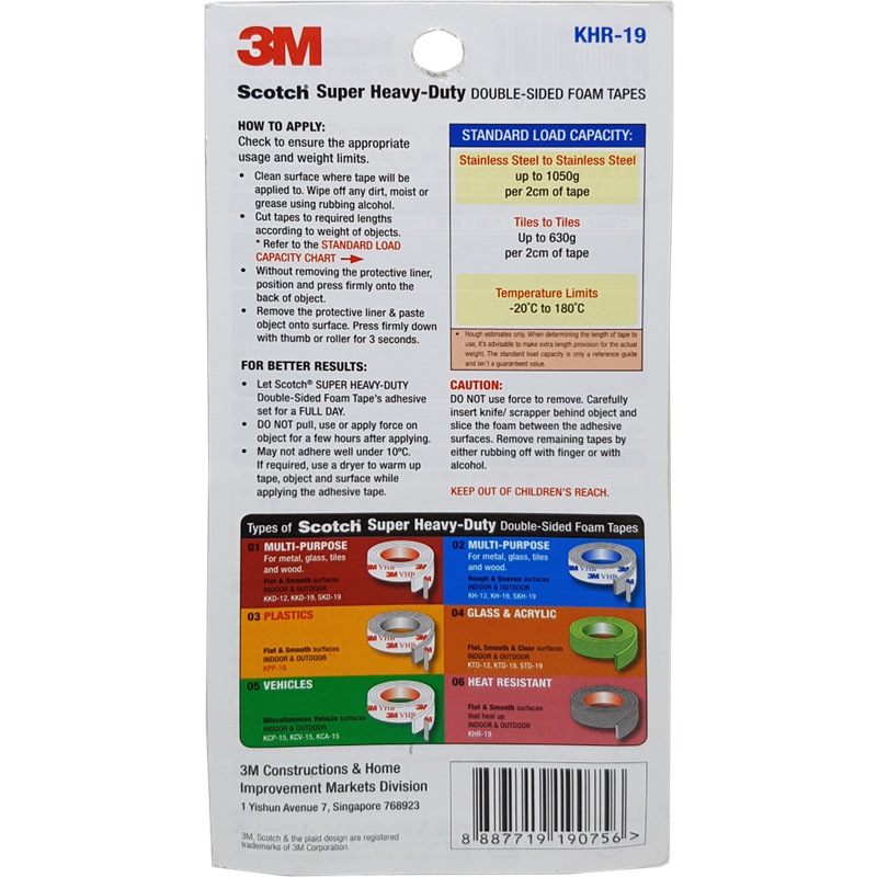 3M SCOTCH HEAVY DUTY DOUBLE SIDED FOAM TAPE KHR-19 (HEAT RESISTANT) 19MMX1.5M