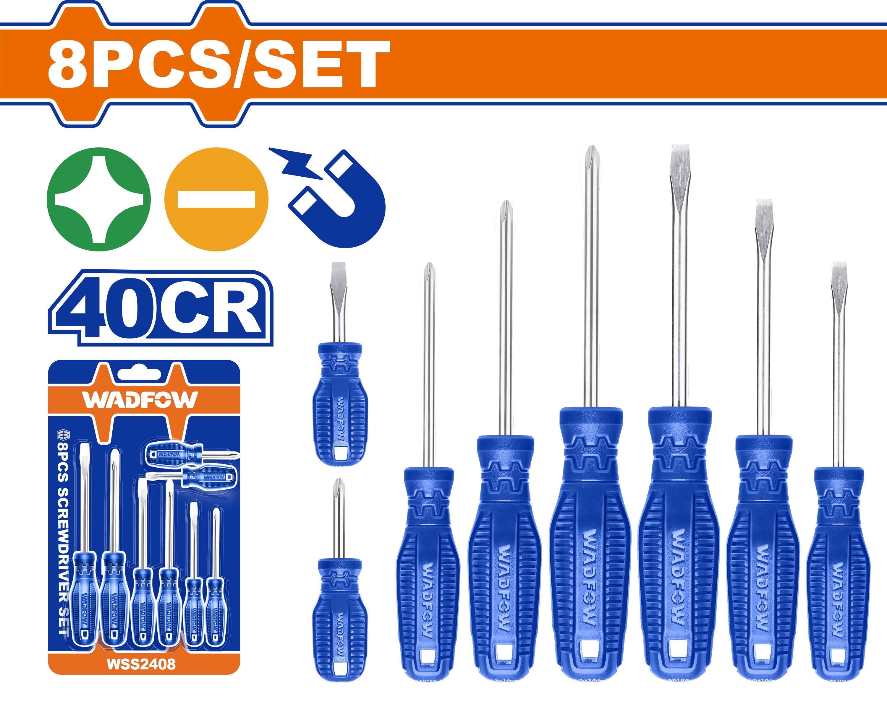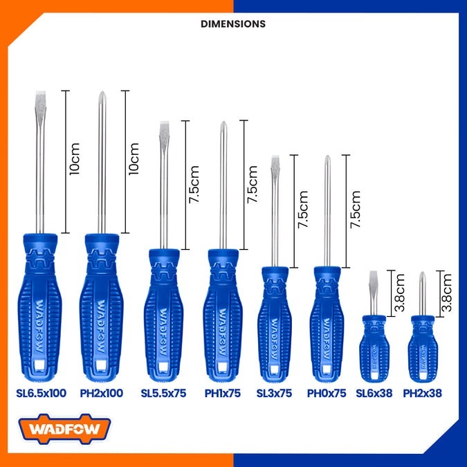 WADFOW 8PCS [2X38, 2X75 & 4X100MM] (-) & (+) SCREWDRIVER SET WSS2208